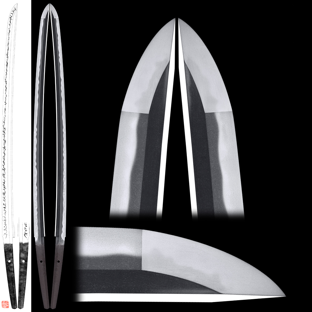 Shape : The blade is wide and thick with suitable curve and long Kissaki good looking shape.