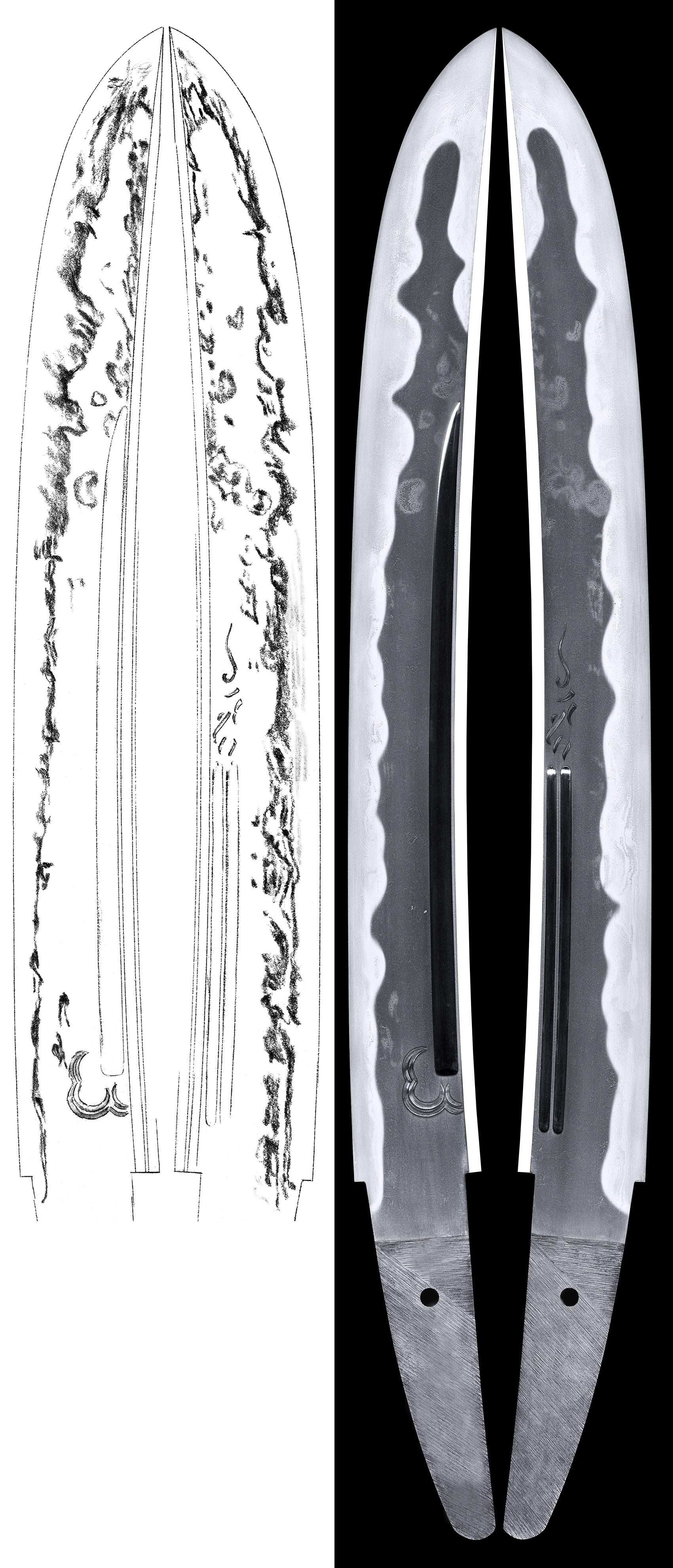 This blade very healthy and wide, having Hitatsura Hamon, beautiful Jigane with engravement done.