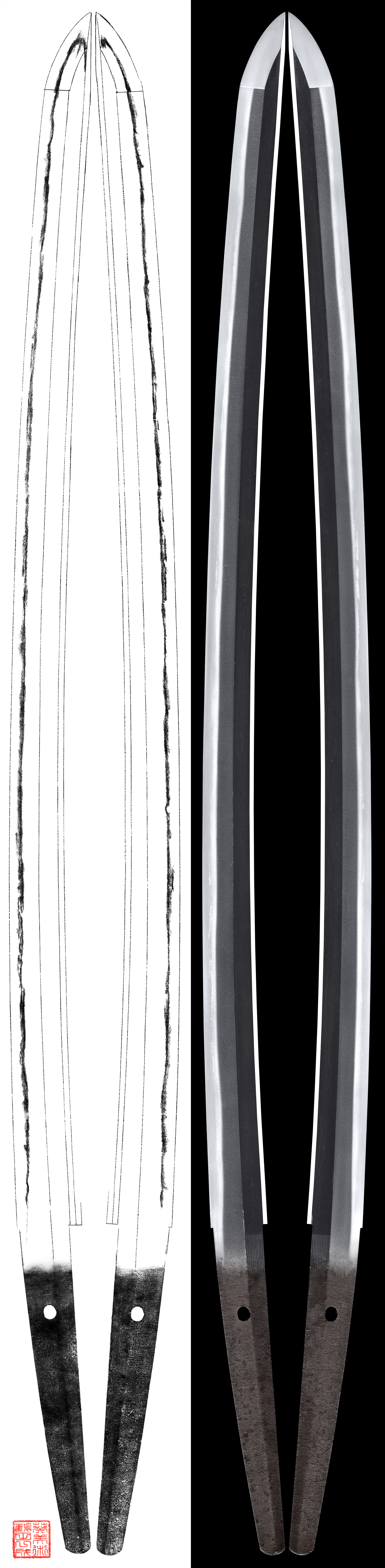 1 : The blade is rather wide and thick with deep sori and longer kissaki nice looking shape Keicho style.