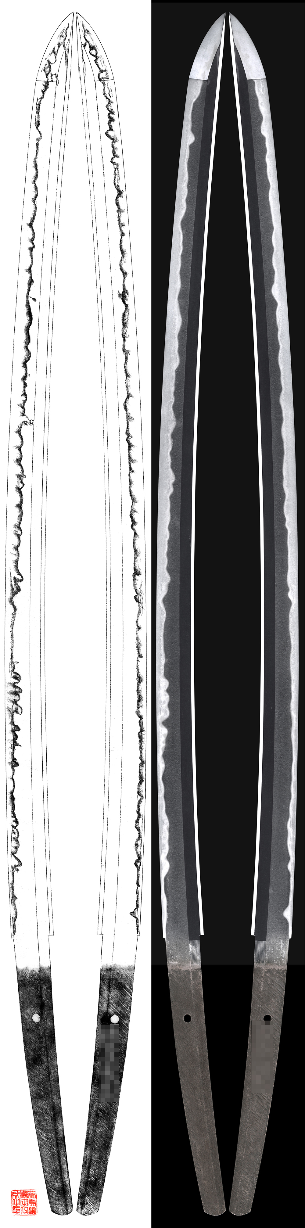 Hamon : Niedeki gunome midare with thick nioikuchi.