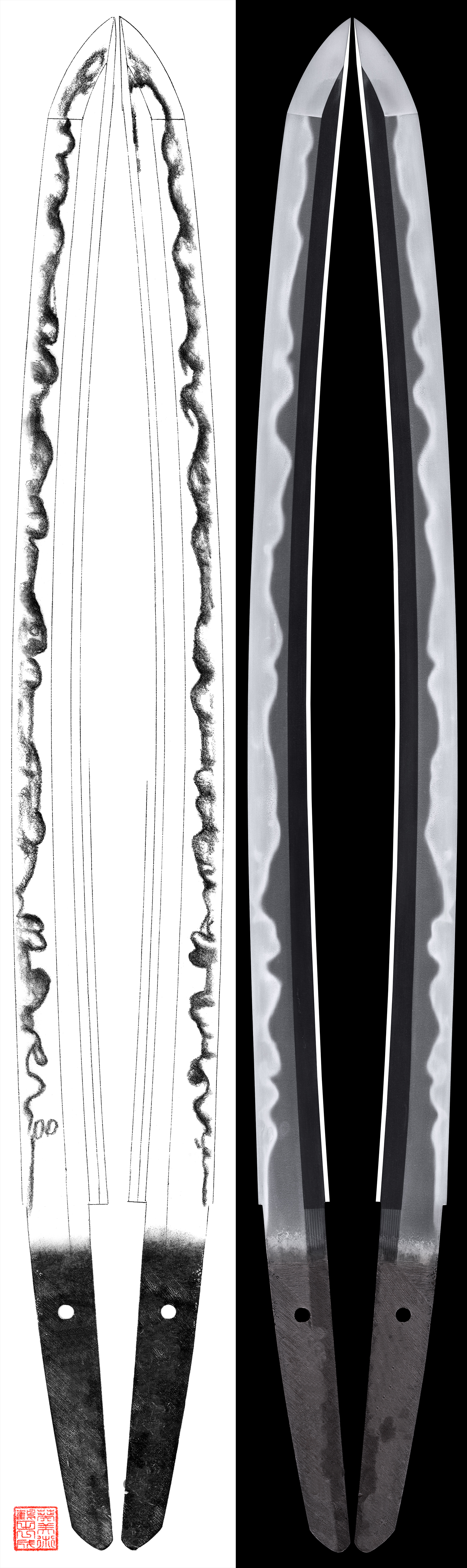 Special feature : Founder of Fukuoka Ichimonji school is Norimune. Him and Narimune, Naomune, Muneyoshi, Munetada, Shigehisa, Sadanao are the most old generations of Fukuoka Ichimonji school and they are called as ‘Ko-Ichimonji’, which means ‘old generations’