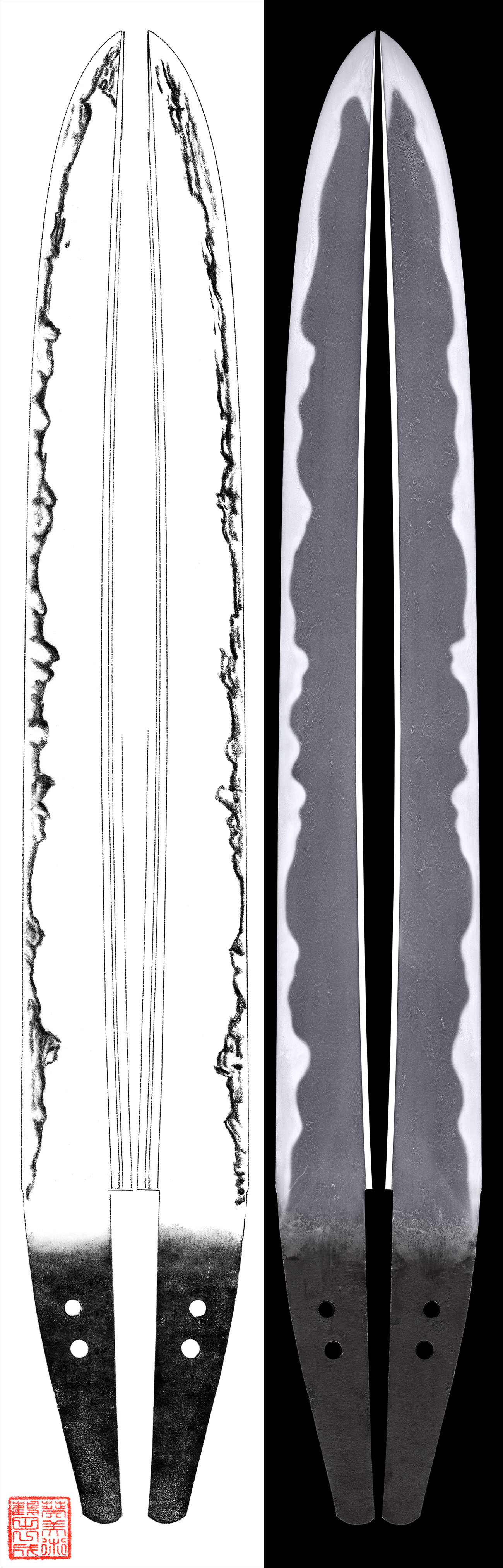 Boshi is Jizo and Kaen Fu. The both side of Hamon is pair shape.