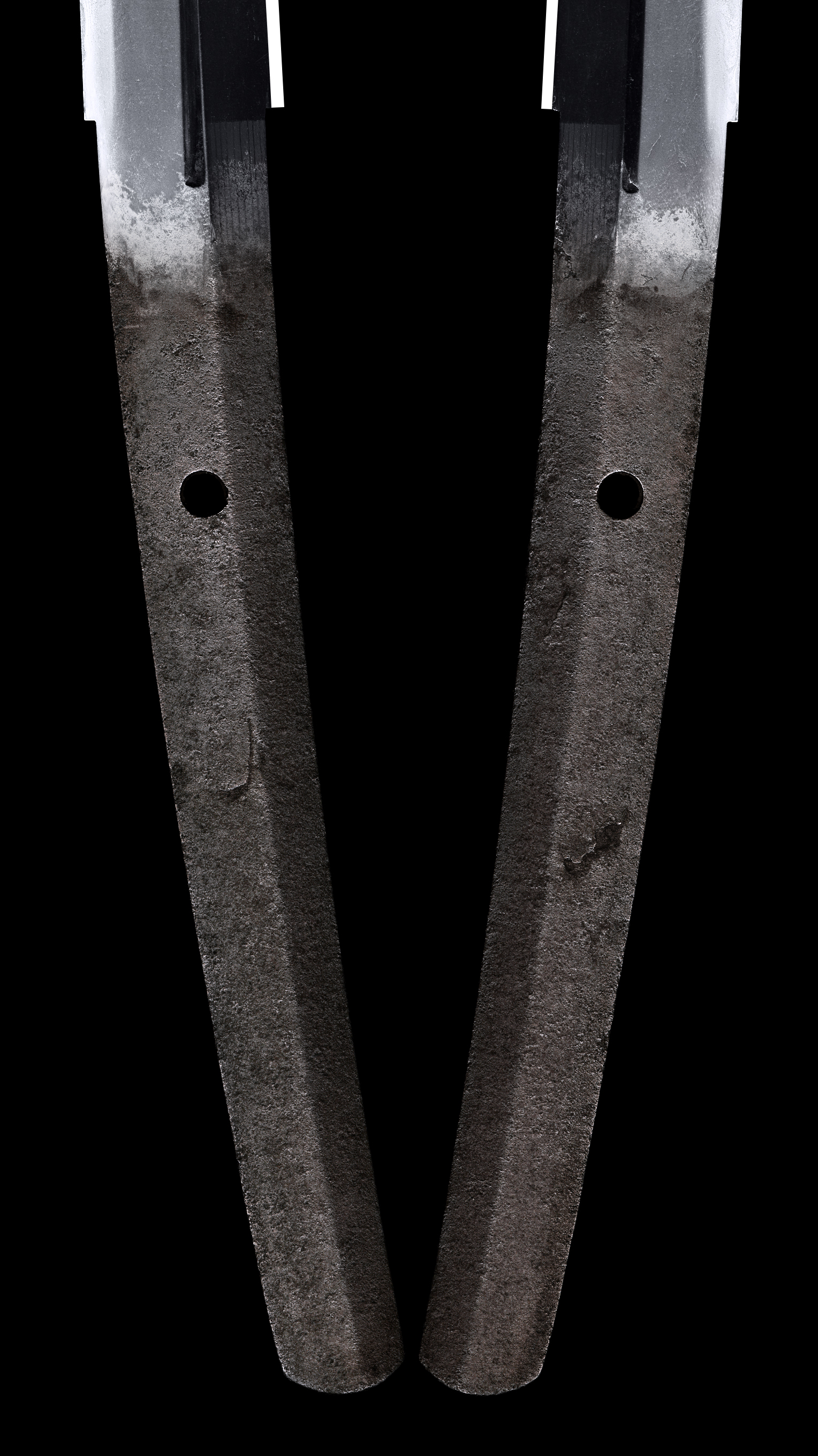 Shape : Shinogi zukuri style rather slender oosuriage mumei with deep sori and curvve is rahter flat in front partwhich is called Utsubuse gokoro.