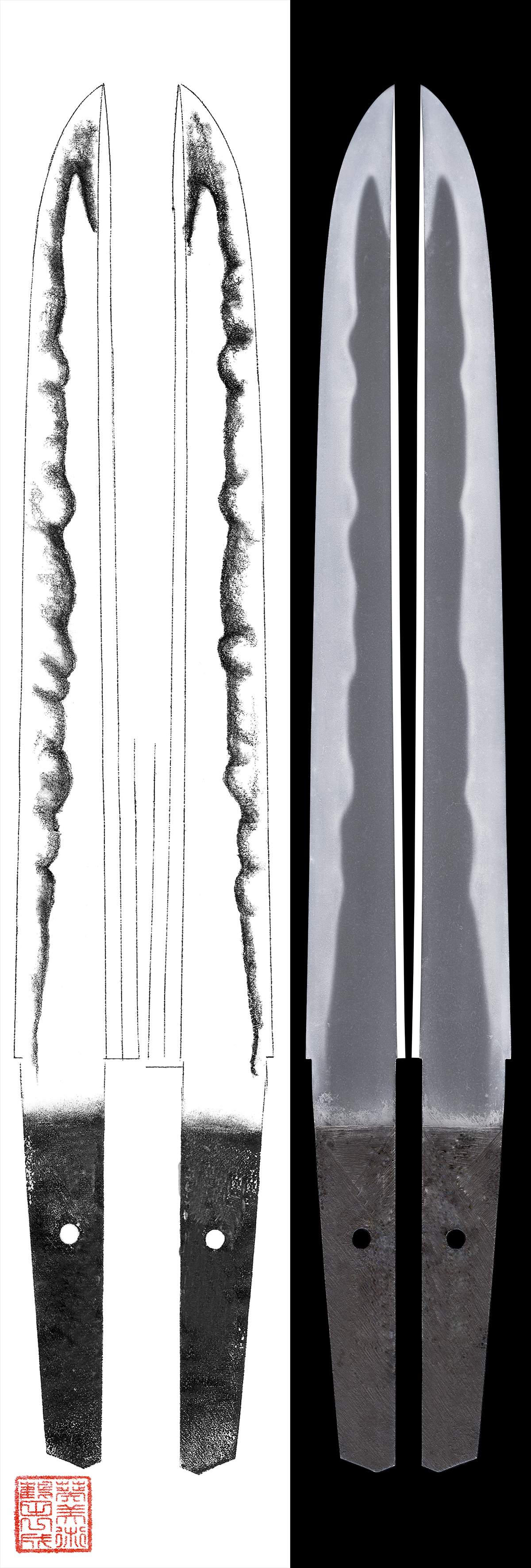 Hamon :Nie deki, from Habaki part is Suguha, and then Doranba with thick NIoikuchi. Boshi is round shape.