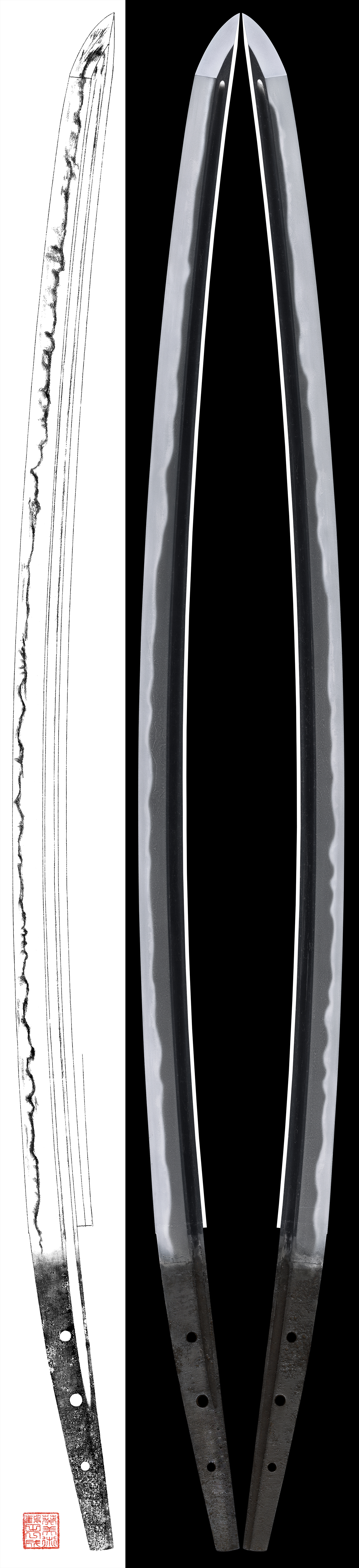 Wide and thick with large Sori. The kissaki is long.