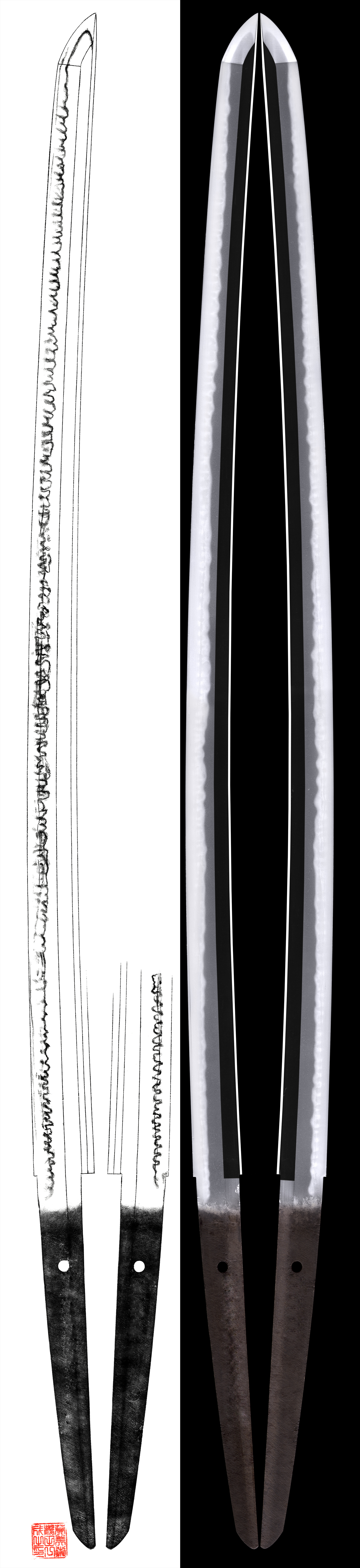 Shape : The blade is rather wide and thick with suitable sori and longer kissaki nice looking shape.