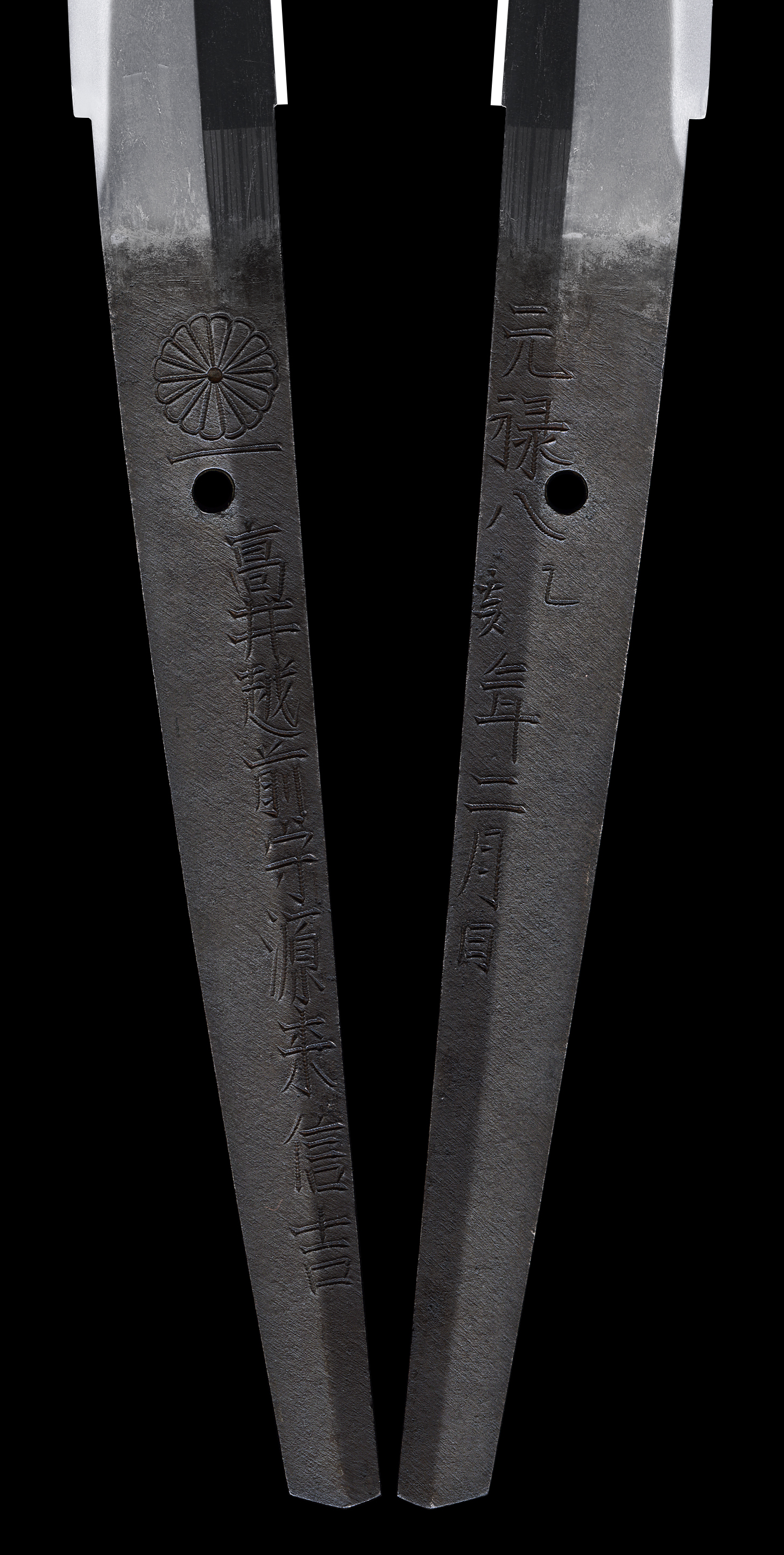 There are “Kikumon” and “Ichi” and “Minamoto” in this blade’s signature.