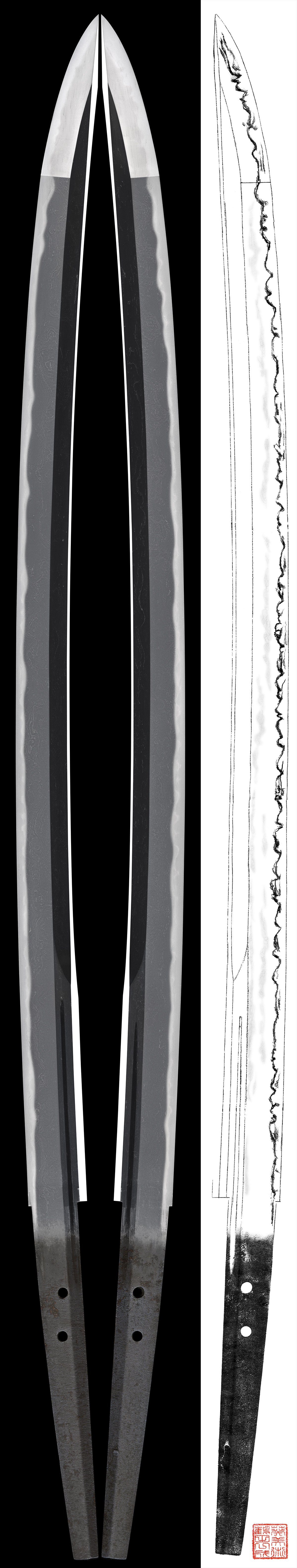 Shape : The blade is very wide and thick long sword with very long Kissaki.