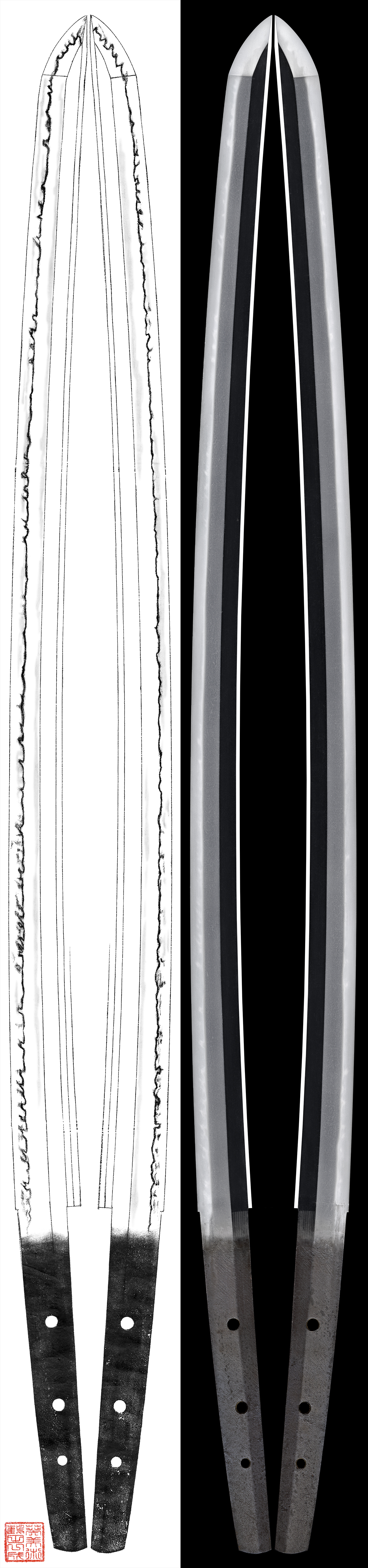 Special feature:The Aoe School had been prospered at the lower reaches of the Takanashi river in Bichu province.From middle Kamakura to Nanbokucyo perod is called Aoe school and more older sword which was made middle Kamakura to Hean period is called Koaoe school.