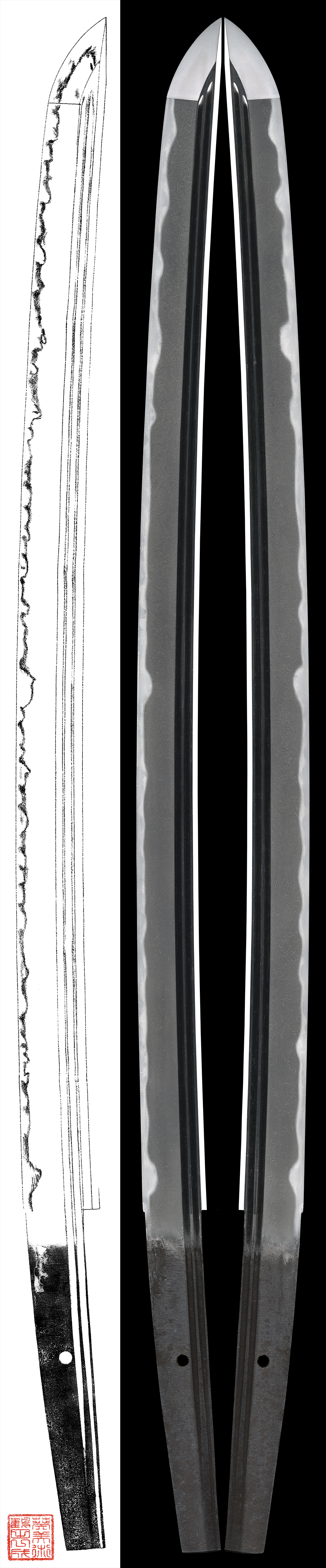 Hamon : Nie deki, Gunime midare hamon and Notare midare hamon mix.