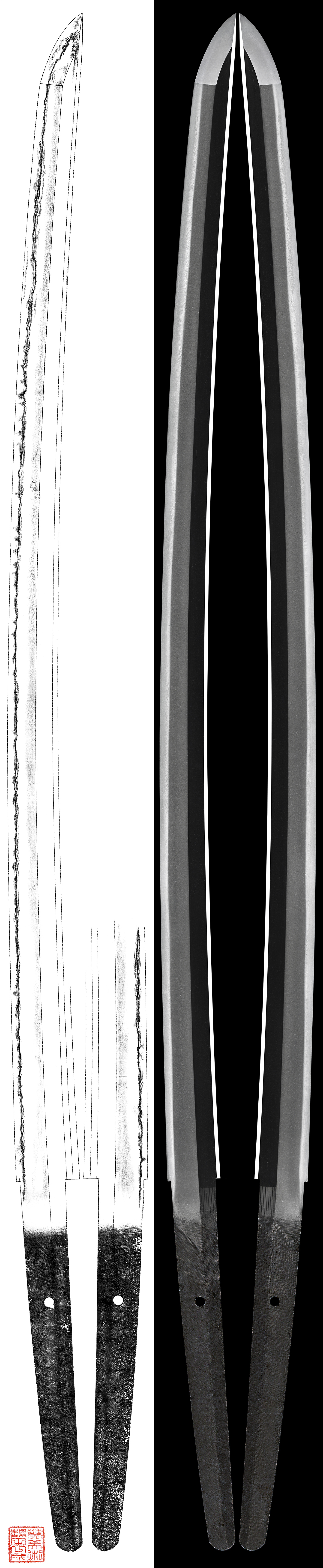 Masahide was born in Yamagata pref. in 1750. It is said that he learned under Kunikane the Forth. Masahide went to Edo and learned under Yoshihide at the age of 22. Masahide became a retained swordsmith of the Akimoto family and studied the method of making sword and disciplined pupils. A daimyo; a feudal lord gave Masahide foreign steel called Namban-tetsu to study. He was fond of brilliant Toran-ba that had a tendency to break so he tried to the revival of Koto aimed at the sharpness. It is an accepted theory that he was the founder of Shinshin-to.