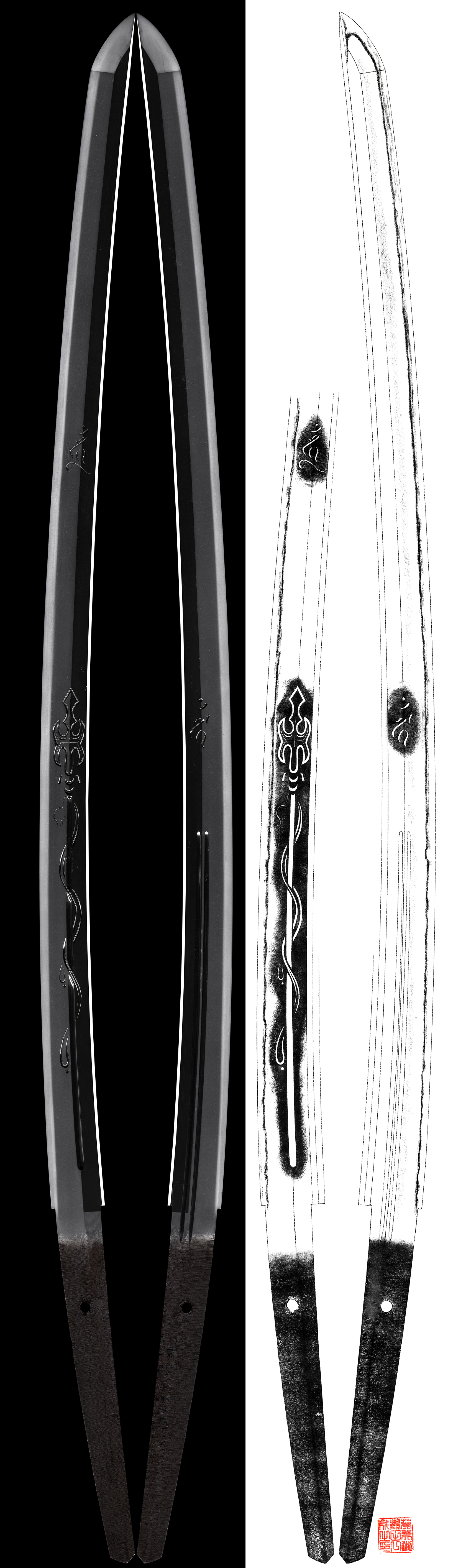 the back, hutasujihi and bonji are engraved.