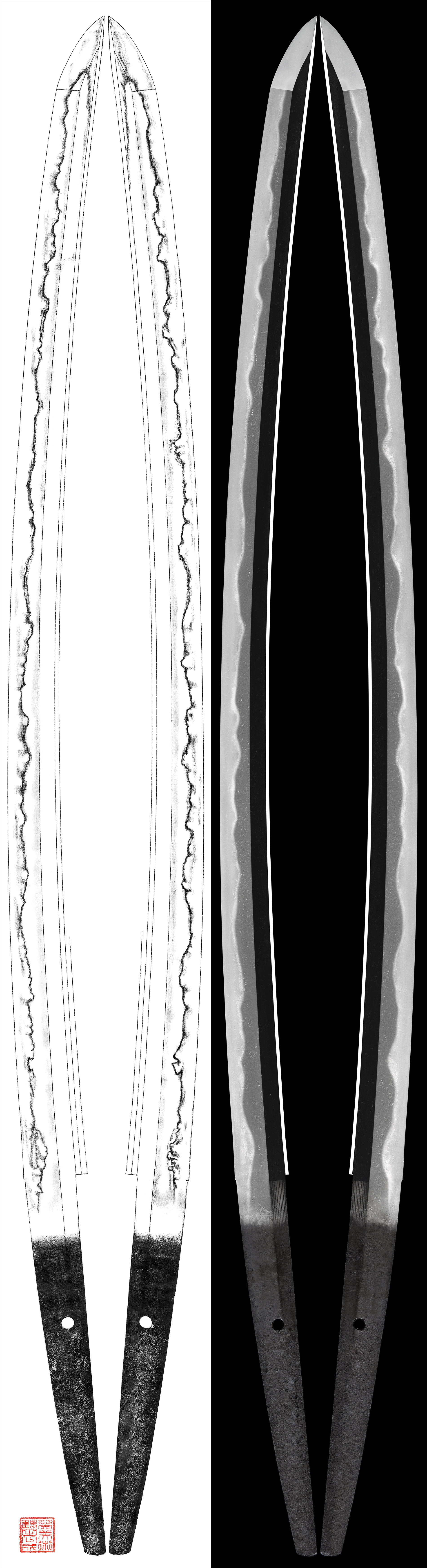 The blade is Osuriage Mumei, wide Shinogi. There are lot of works in the Ha.