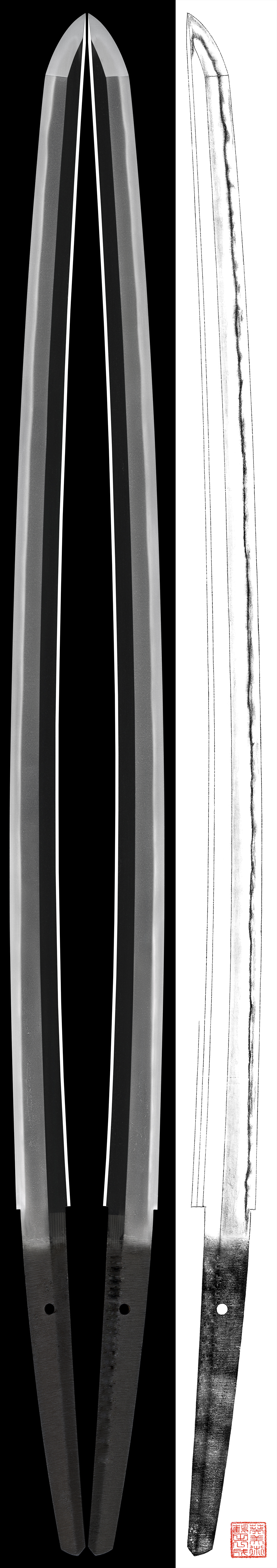 Shape : The blade is wide and thick with deep sori and longer kissaki.