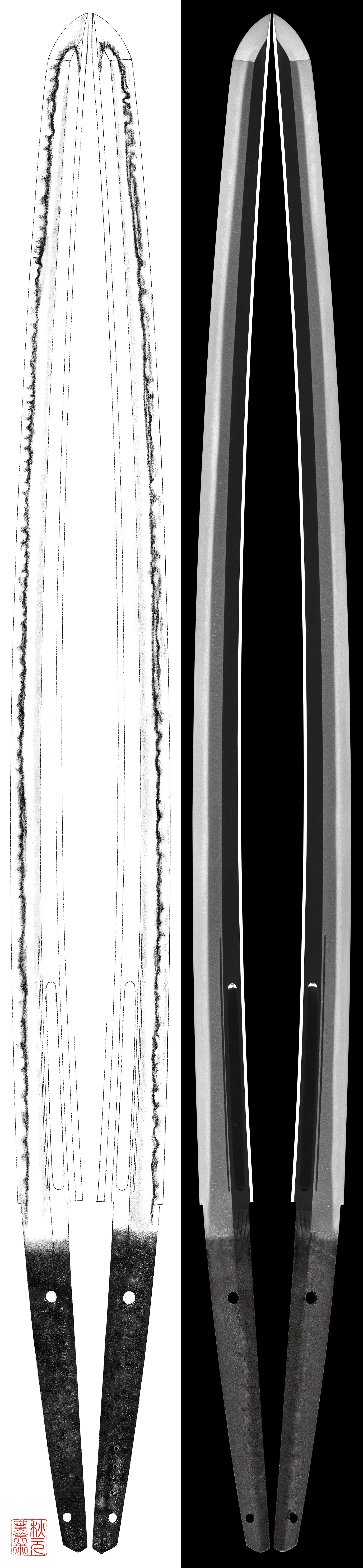 Shape : The blade has Bo-Hi and Soe-hi on both sides of the blade.