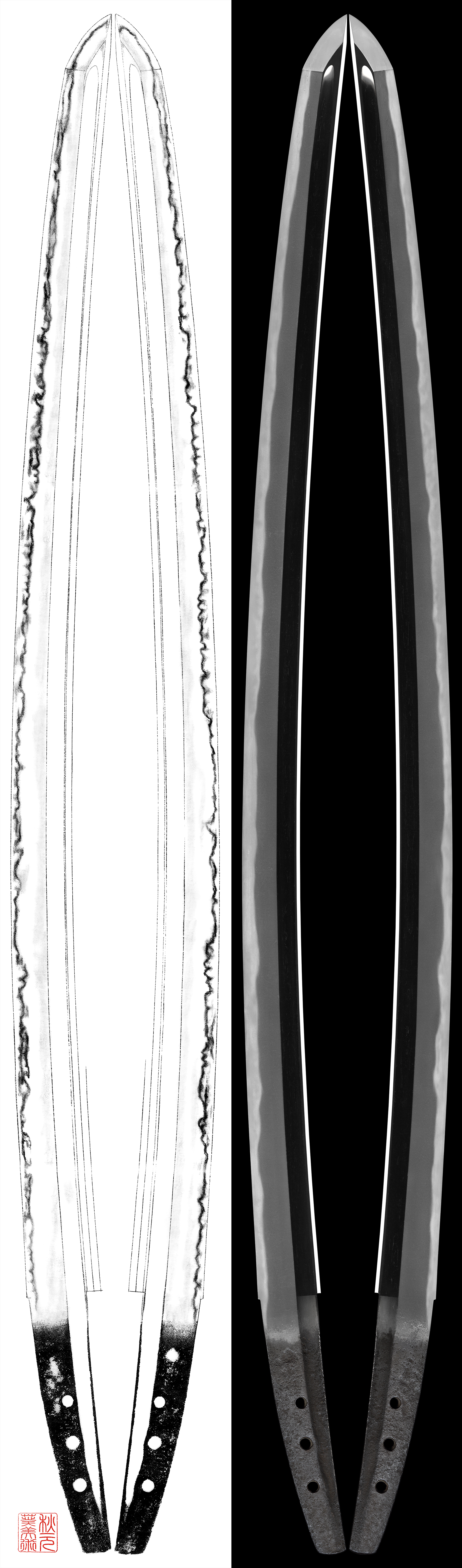 from his father Kagemitsu especially Kataochi gunome midare hamon.