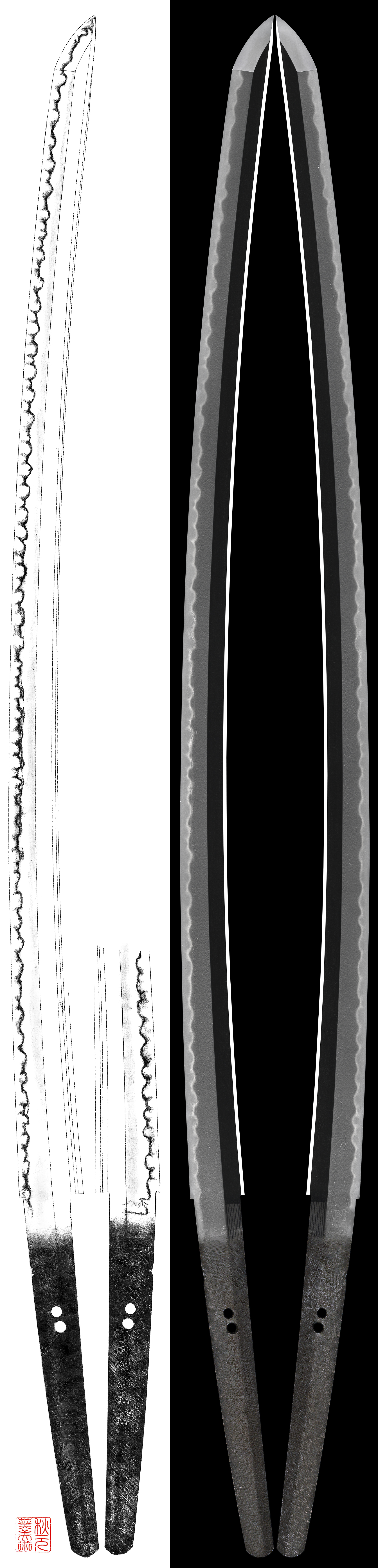 with thick Nioikuchi and Sunagashi, Kinsuji scatter.