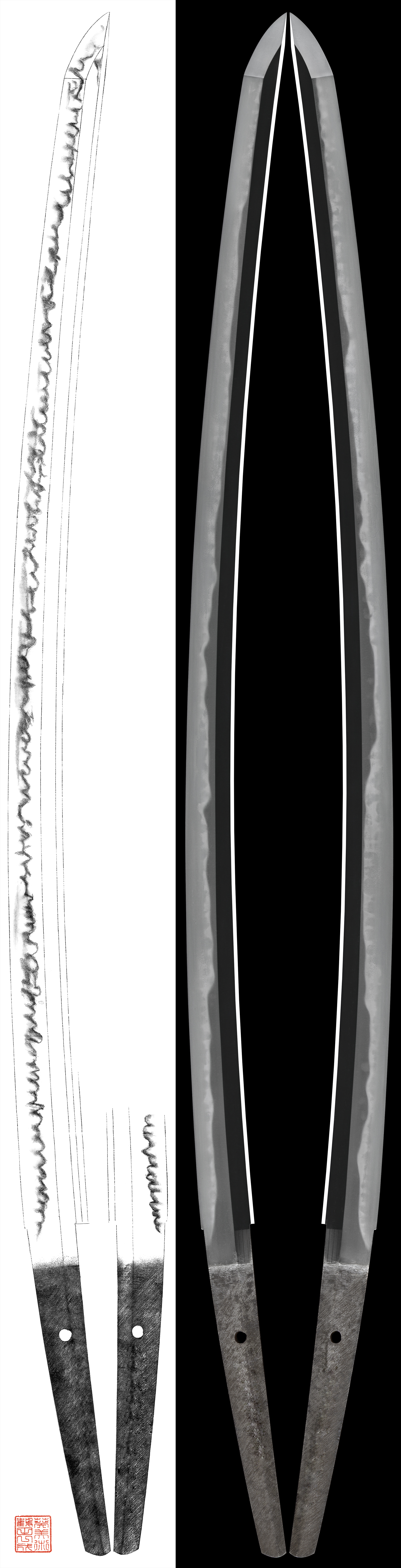 Shape : Wide and rather thick Katana, longer Kissaki, with moderate Sori.