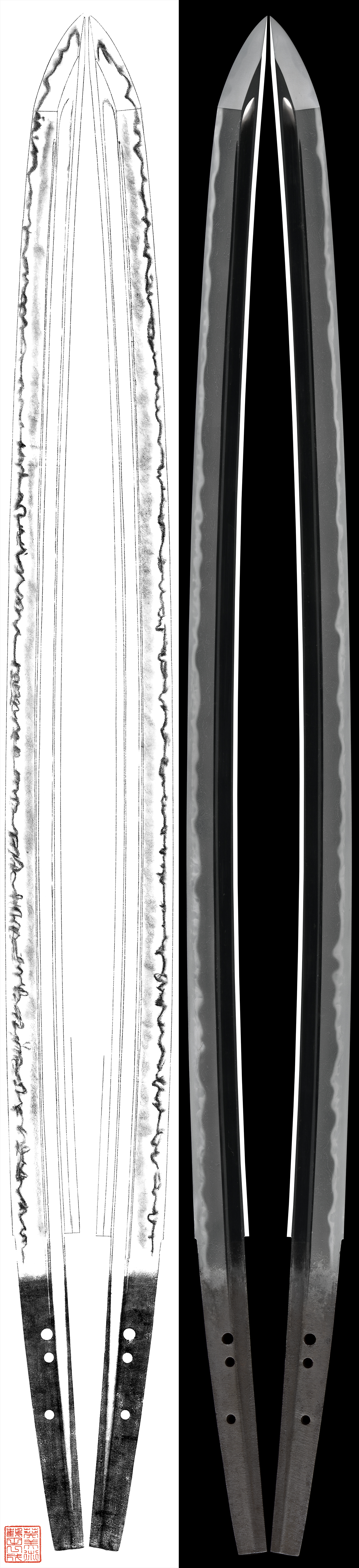 Shape : The blade is wide and thick with small sori ,long kissaki with bo-hi