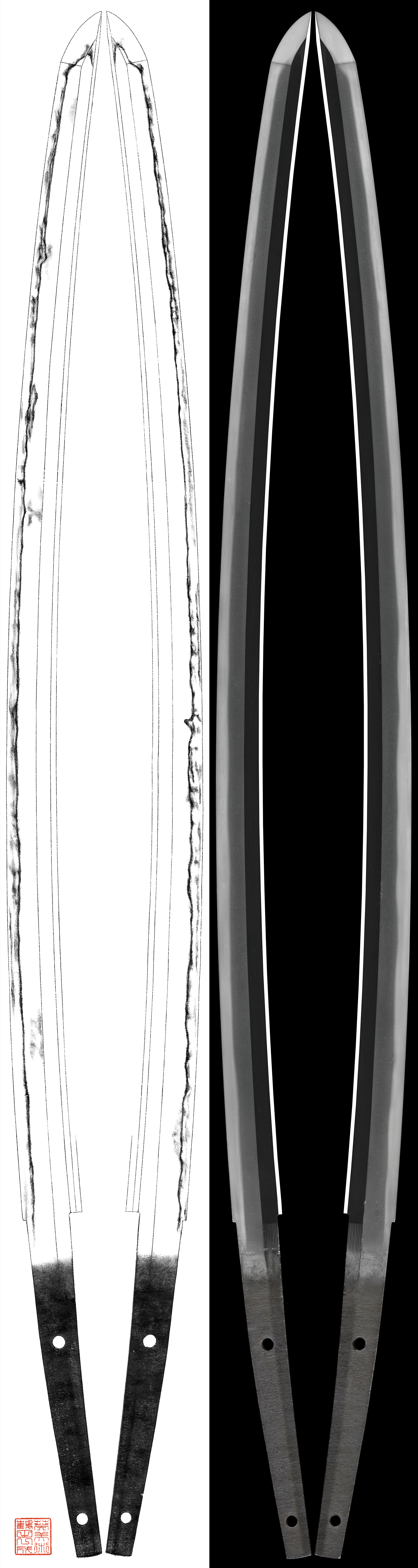 Shape : Ouriage Katana with nice thickness, later deep Sori, and longer Kissaki.