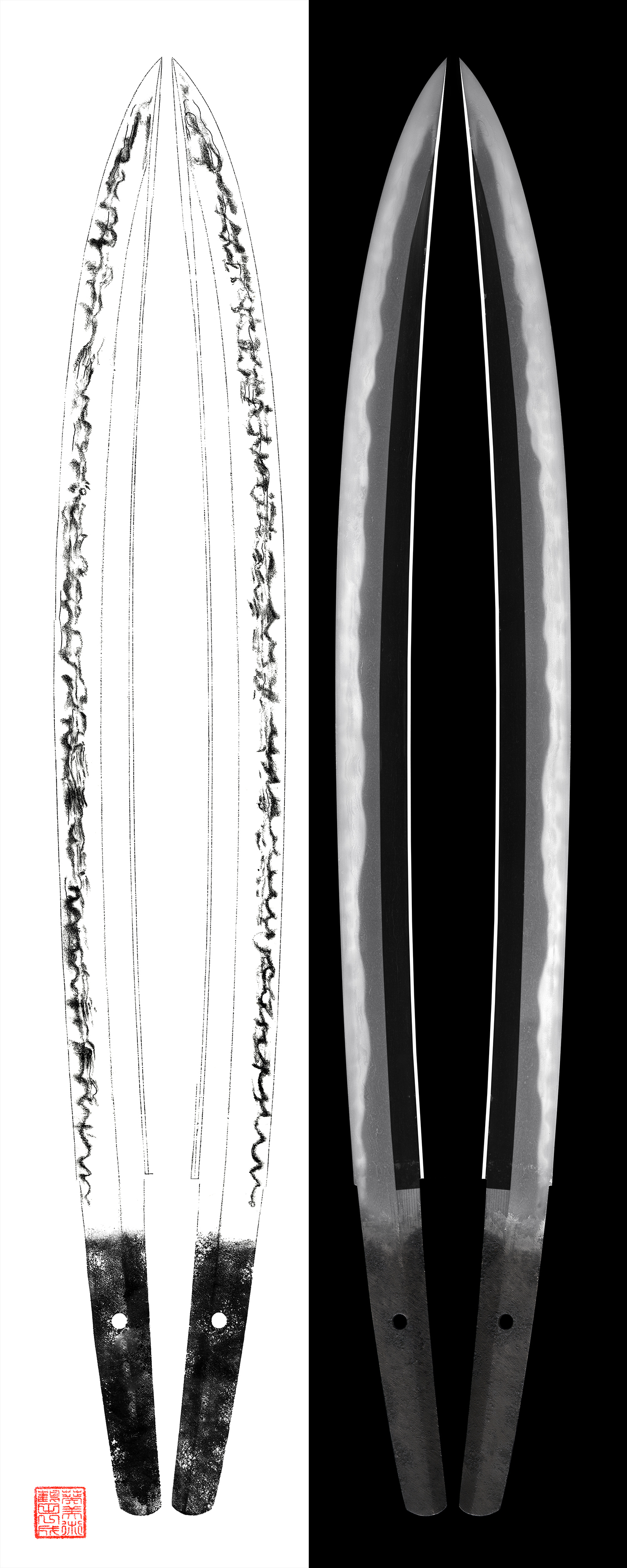 Shinogi-Ji: Ko Itame Hada and Ko Mokume Hada mix.