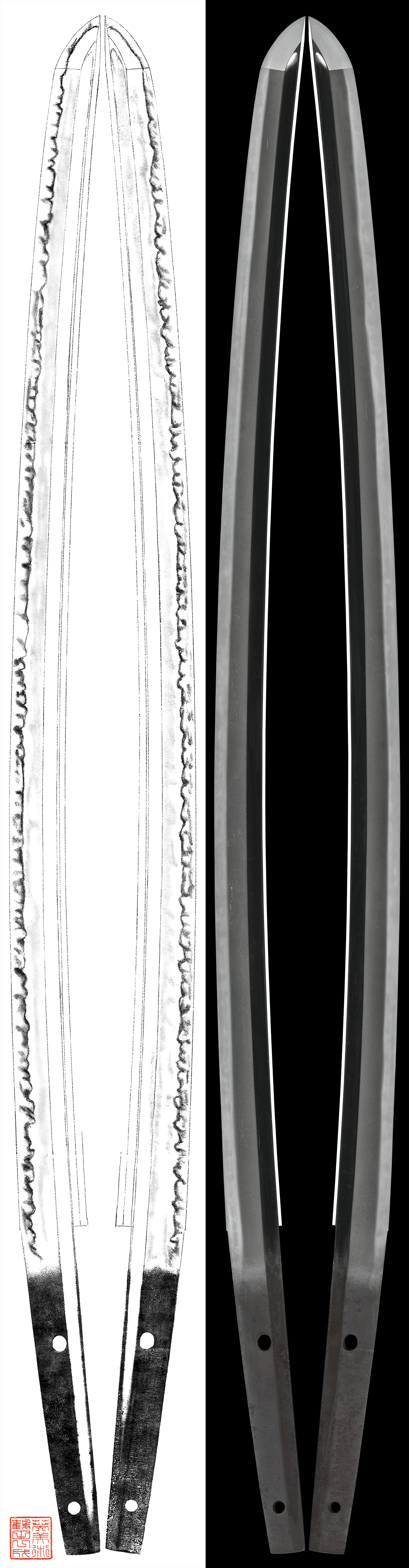 Shape : Regular width and thickness Katana, longer Kissaki. There are Bo-Hi on both side of the blade.