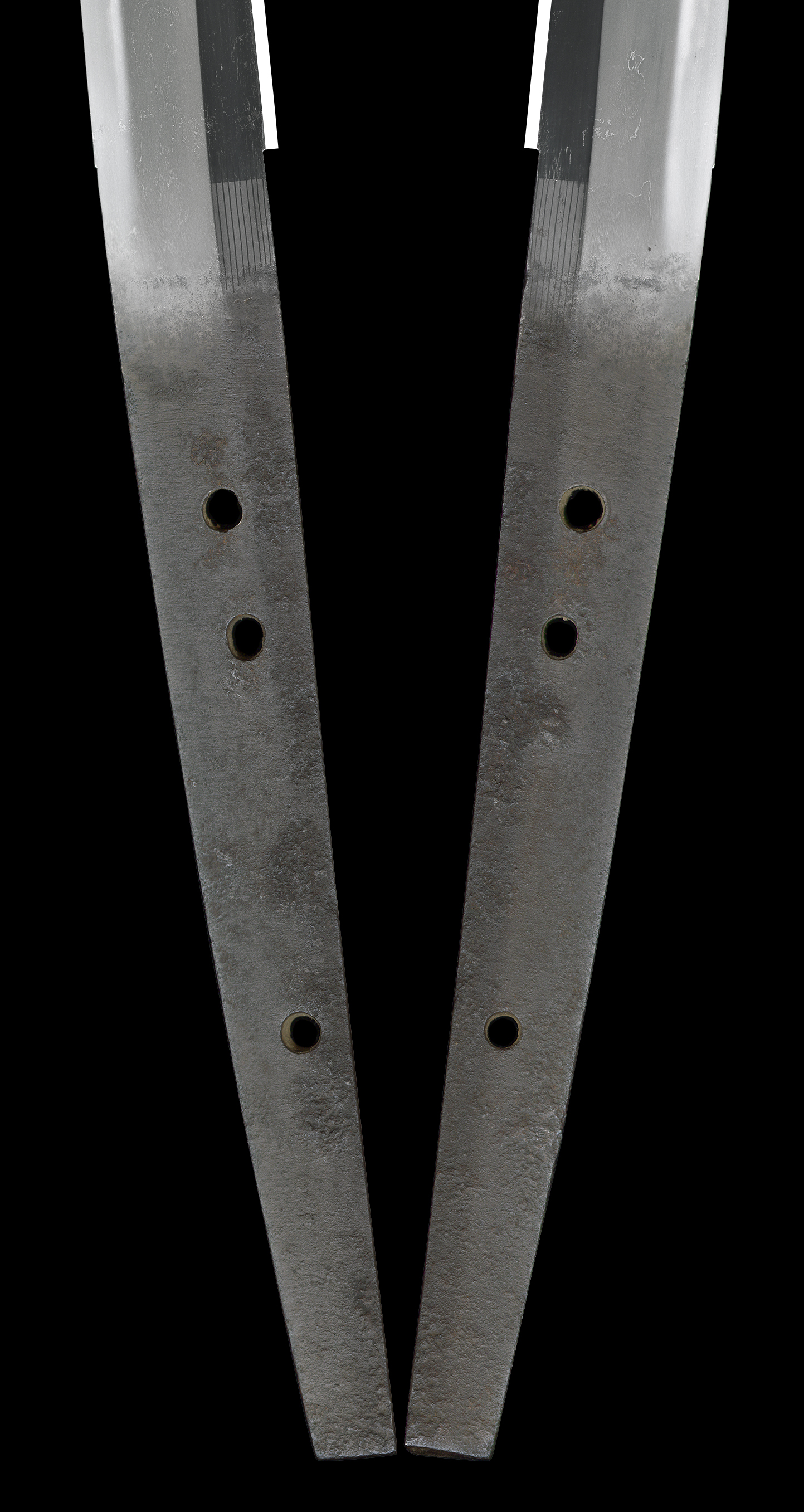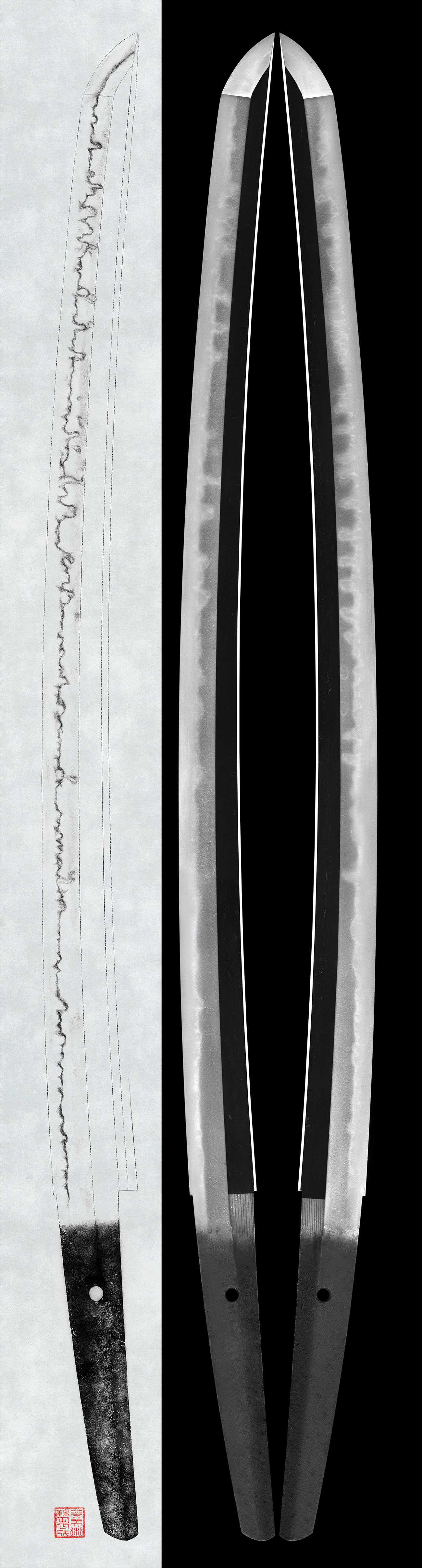 Shape : The blade is wide and thick with small sori and longer kissaki healthy blade.