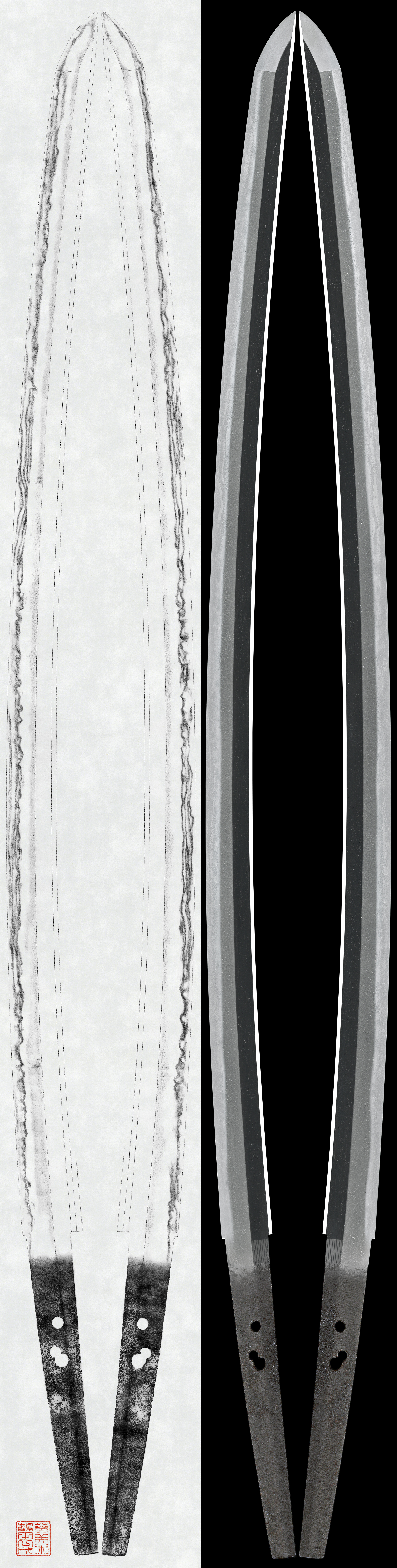 Shape : Osuriage, wide and thick blade with deep Sori, longer Kissaki.