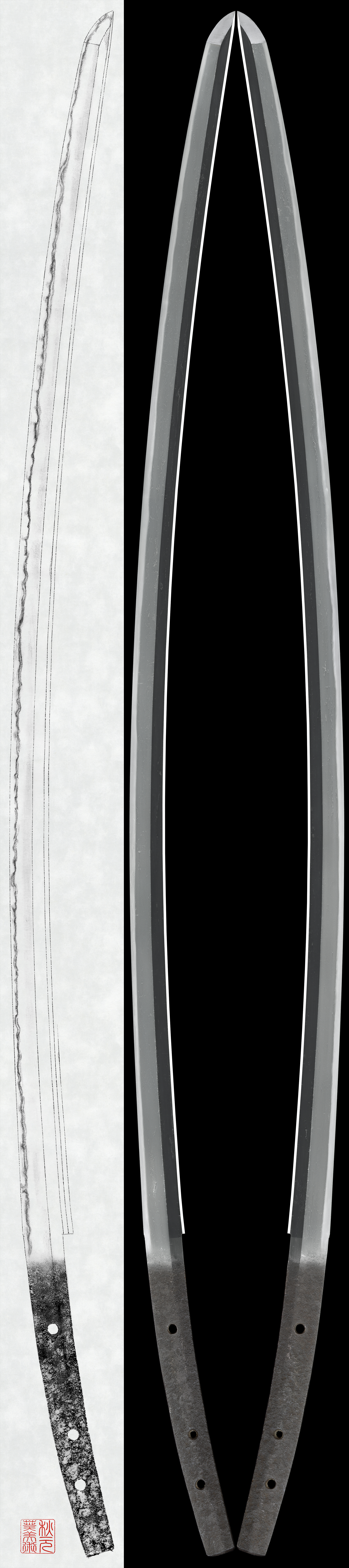 Shape : The blade i rather slender with deep sori (2.9cm )