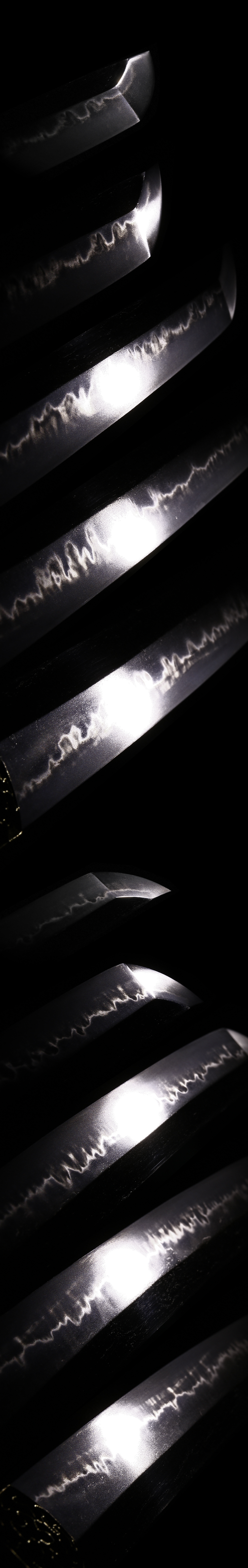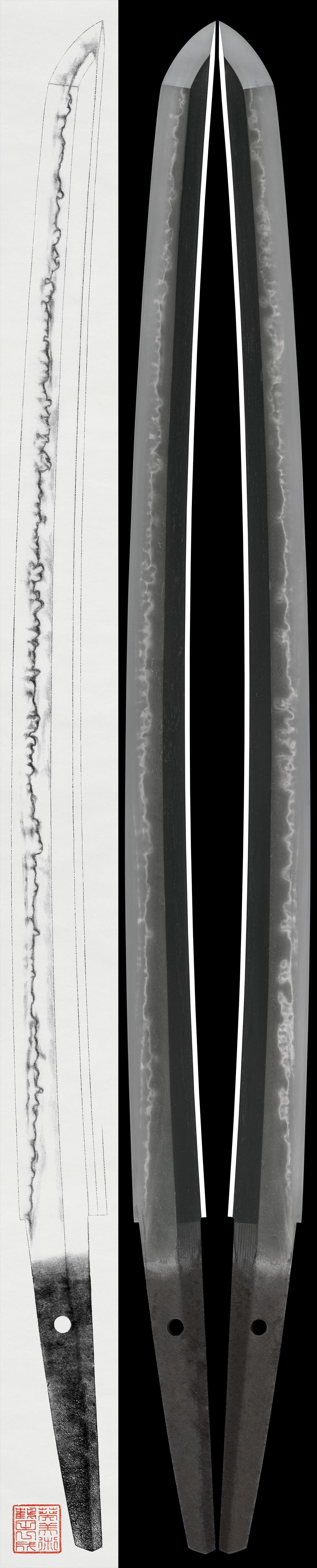 Hamon :Nioi deki Cyoji midare and kogunome midare mixed with koashi, Yo work. Bo-shi is Ichimai boshi, Hamon is soft and Yo work.