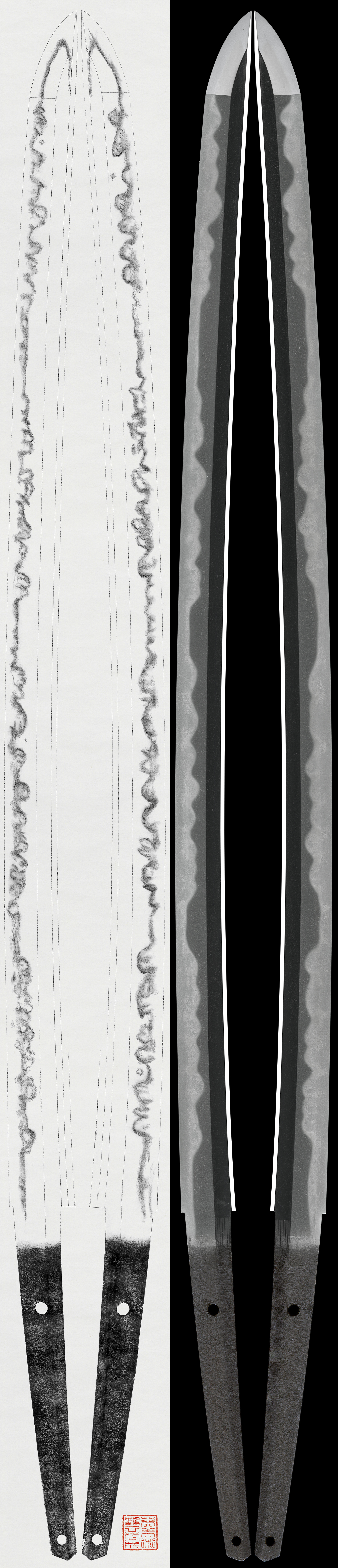 Hamon : Rounded shape Gunome Midare and Choji Midare mixed.