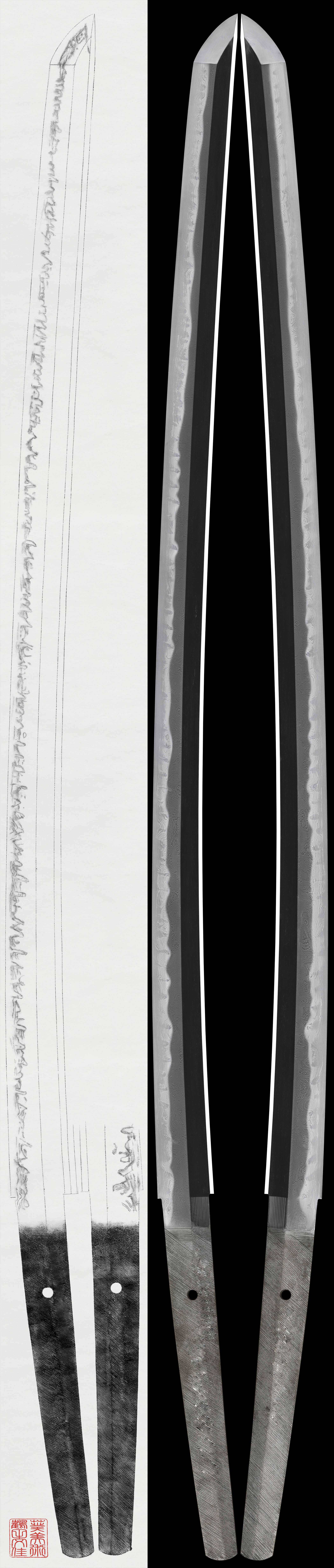 Shape: The blade is broad and thick, has Ububa left, solid with adequate Sori and Kissaki(Chu-Kissaki).