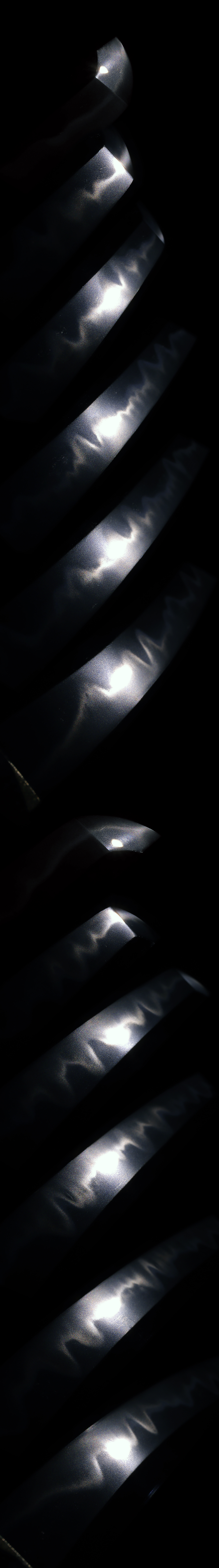 Shape: The blade is broad and thick with slightly deep Sori and longer Kissaki.