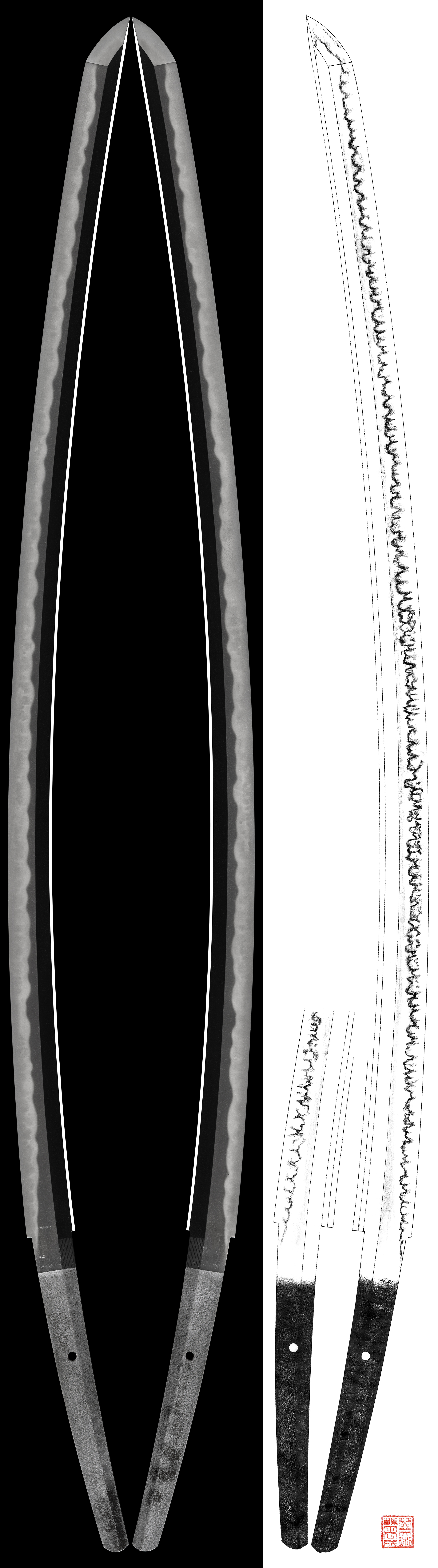 Shape : The blade is very wide and thick with long sword with deep sori marvelous very healthy wonderful gorgeous sword.