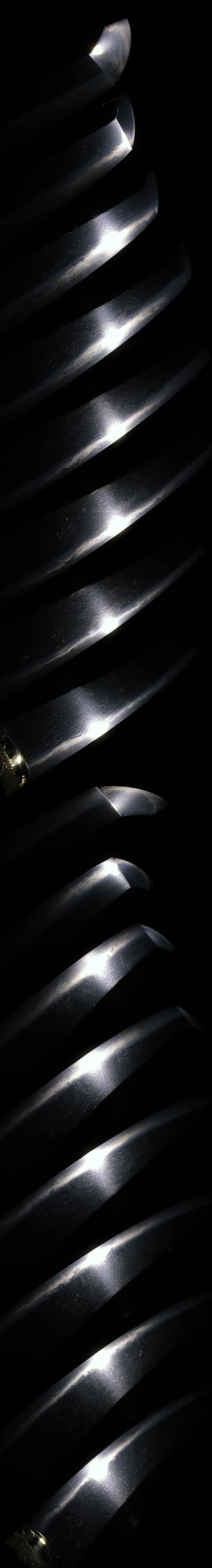 Hamon: Niedeki sodt Gunomemidare with deep Nioikuchi. Sunagashi and Kinsuji work in Ha. Boshi is rounded and the tip is soft Hakikake like flames. There are some Kinsuji at the tip.