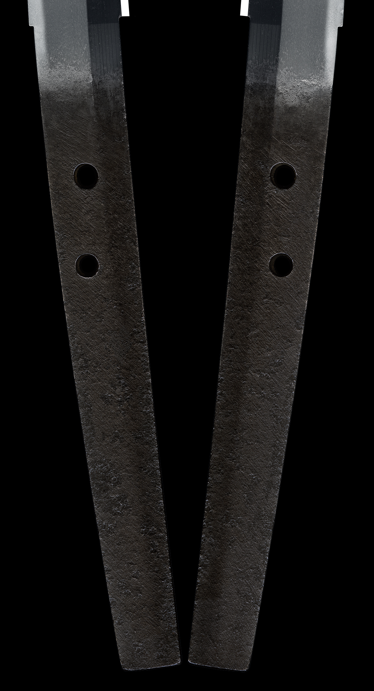 Shape: The blade is normally broad and normally thick with deep Sori and longer Kissaki. There are Bohi on both sides. Well-shaped.