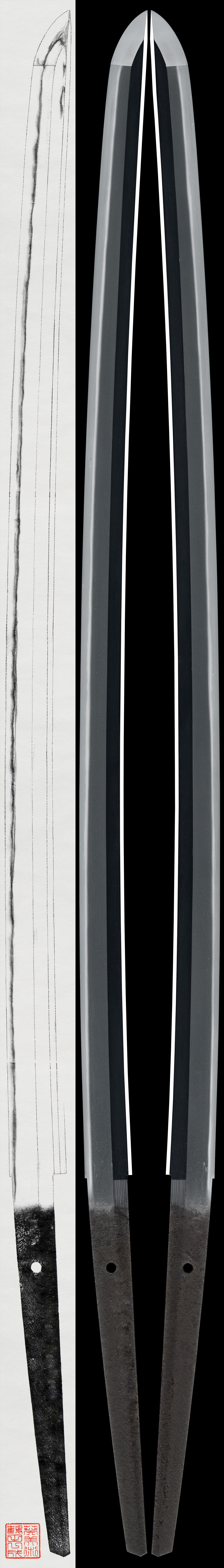 Special feature : A remarkable work with a deep nie-based straight temper line and soft Ashi, with a wide body width of 3.1 cm and a long blade, showing no flaws or imperfections.