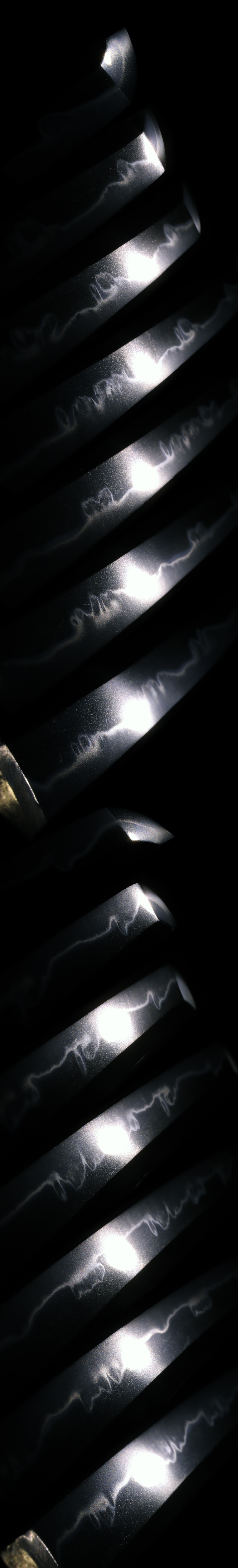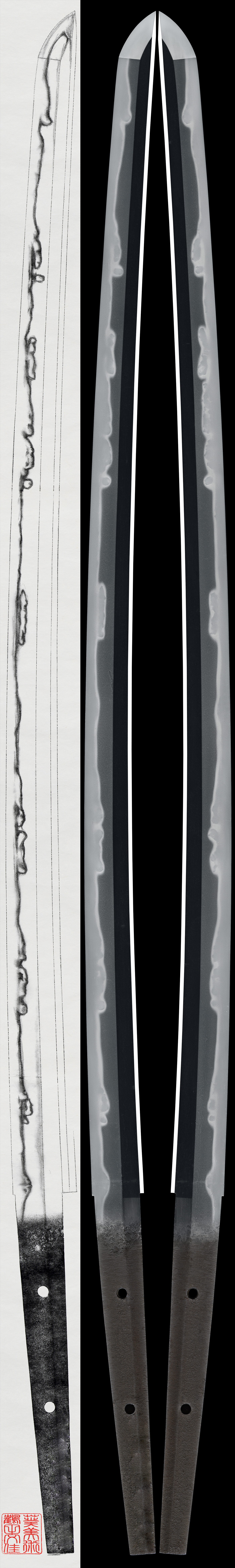 Hamon (Temper Pattern): A deep notare hamon mixed with a rich nioiguchi and abundant gunome midare.