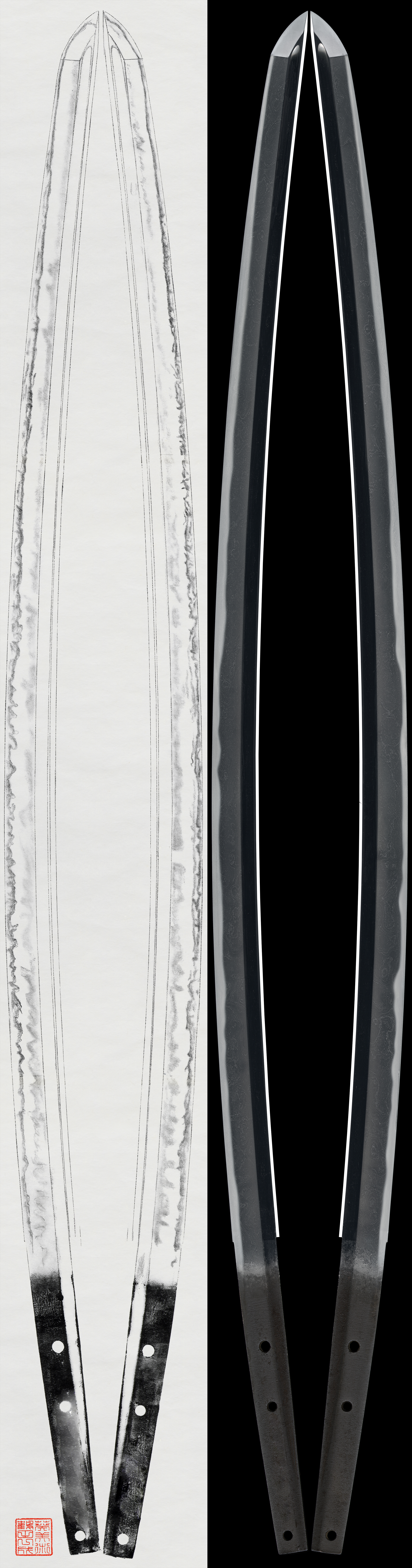 Special Features: We call the swordsmith clan “Katayama Ichimonji” because Norifusa from Fukuoka Ichimonji school moved to Katayama. Katayama is said to have been in Bizen or Bicchu artist, but it is not clear. Norifusa's works have several deffrent styles of inscription, and its styles varies widely, so it is said that there were not only one Norifusa but several generations.