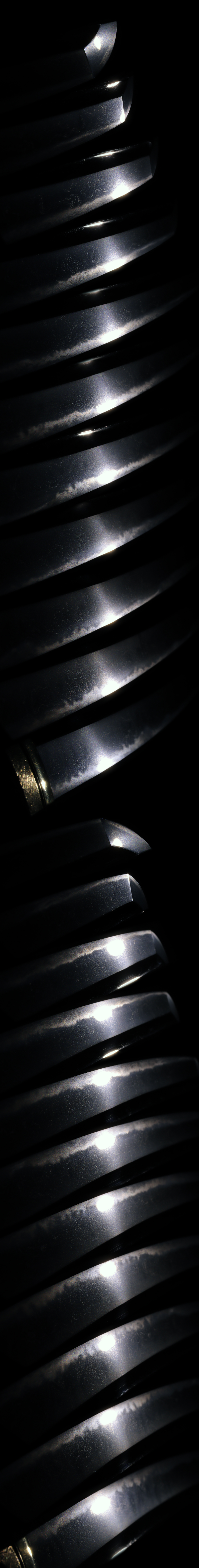 Their characteristics are strong and bright Jigane and smaller Chojimidare with small particles of Ashi in Ha.