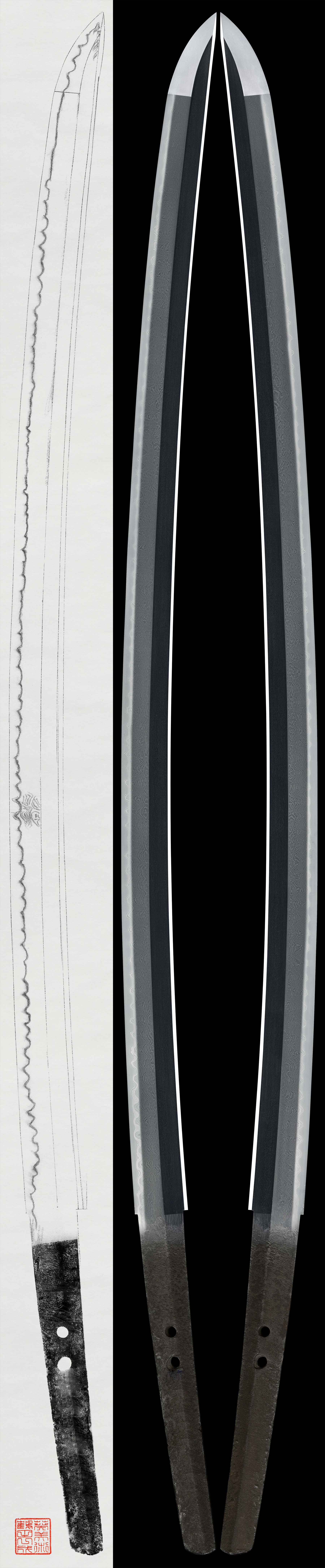 a beautiful hamon. The boshi continues irregularly to the tip, similar to the surface hamon.