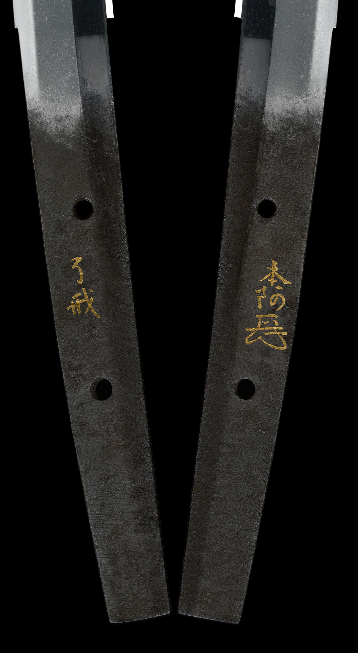 Hamon: The hamon is a bright and vibrant gonome midare in nie, with long ashi extending into the pattern and a rounded boshi with a sweeping return.