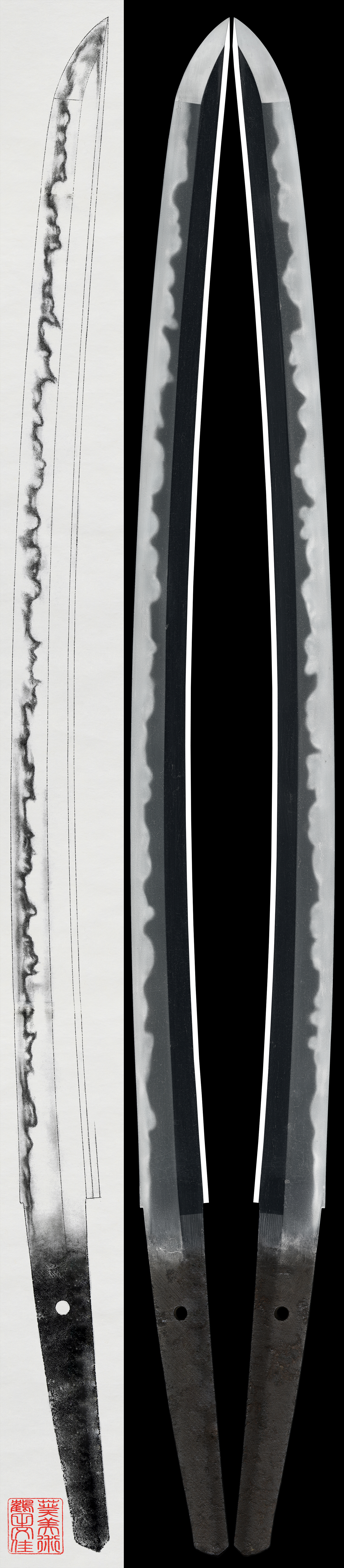 Shape: Broad blade with deep curvature and an extended tip (kissaki), presenting an elegant silhouette.