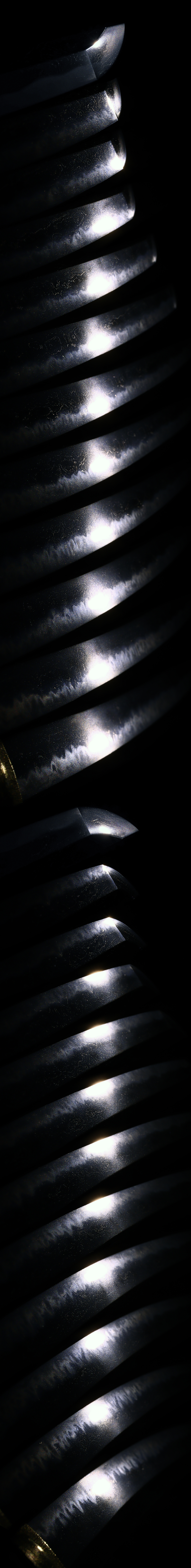 His style resembles Kagemitsu, but closer examination reveals stronger nie, a prominently expressed Sanko-boshi, and a more pointed boshi, showing unique characteristics.