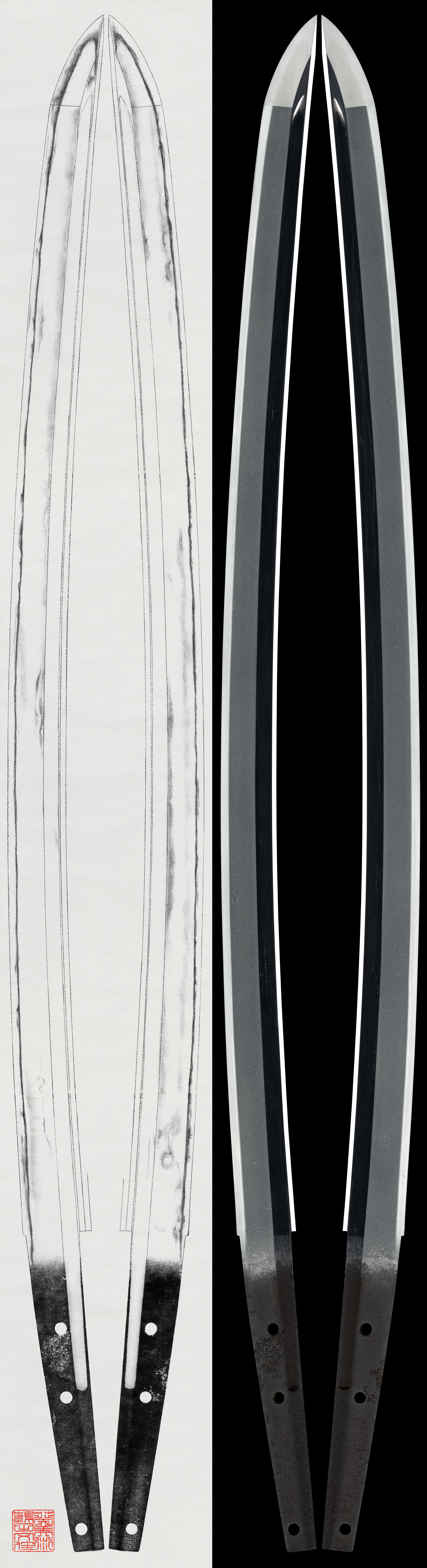 Shape: This blade with a wide width of 3.34 cm and thick kasane, having curvature on both sides and a long, extended kissaki—demonstrating a highest-class shape.