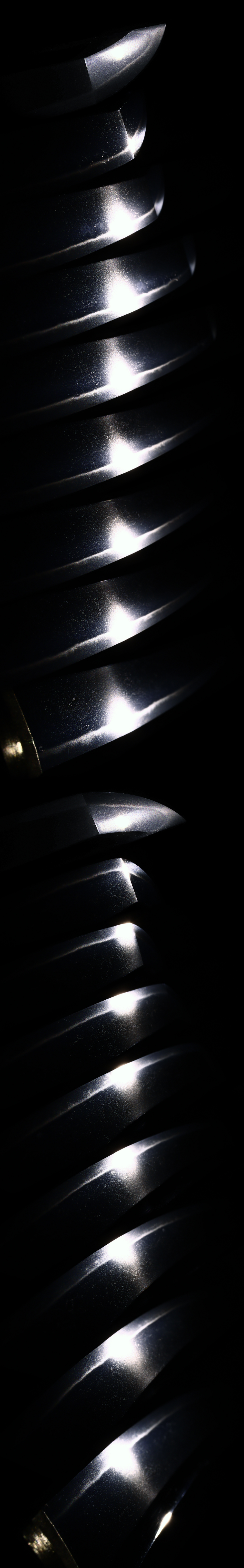 Hamon: Nie-deki in suguha with ko-ashi appearing, and the boshi is round, turning back with slight upward movement.