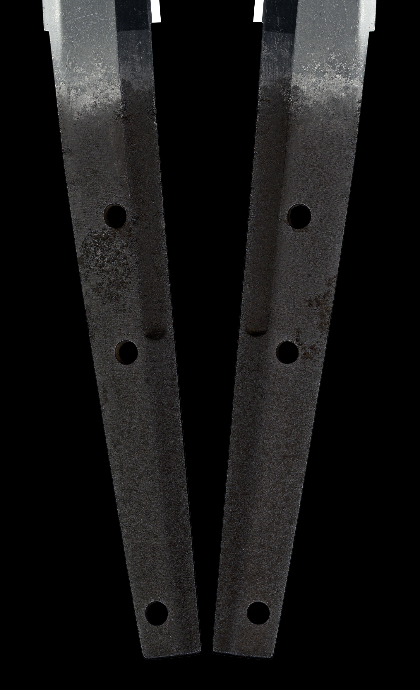 Features: The width of the blade remains consistent without losing form towards the tip, demonstrating a magnificent and bold creation. Upon close inspection, the suguha hamon is enhanced with fine ashi, and the faint utsuri is apparent. Such a robust work is rare, even for me. It is a highly recommended piece. Ko-Mihara is a smith group from Hiroshima, with works resembling those of Aoe from the neighboring province. The lineage traces back to Masaiye, considered its founder. Although it may appear similar to Aoe at first glance, the visible grain in the jigane and the active hataraki in the hamon reflect a softer touch, leading to its attribution as Ko-Mihara. In any case, this is considered one of the finest masterpieces of Ko-Mihara, showcasing grand workmanship.
