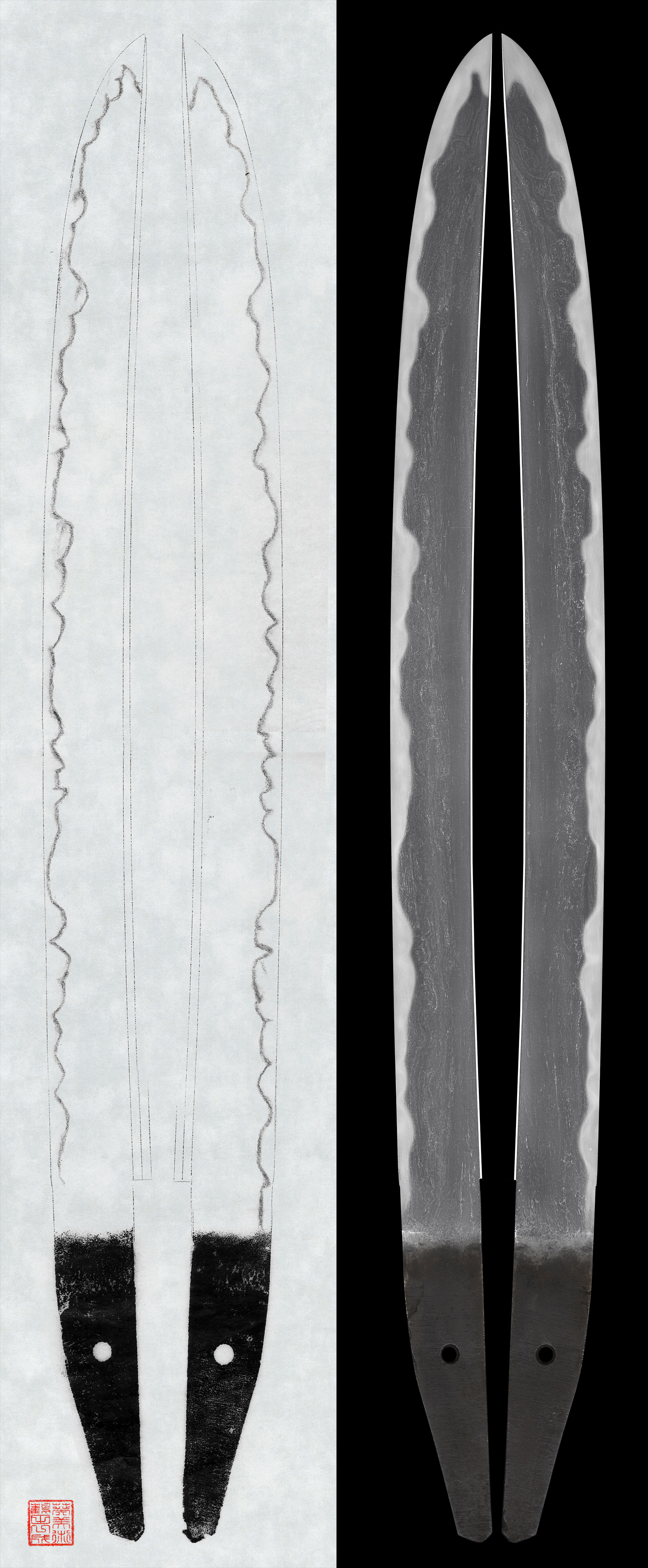 Hamon: Gently undulating midareba, with matching patterns on both sides.