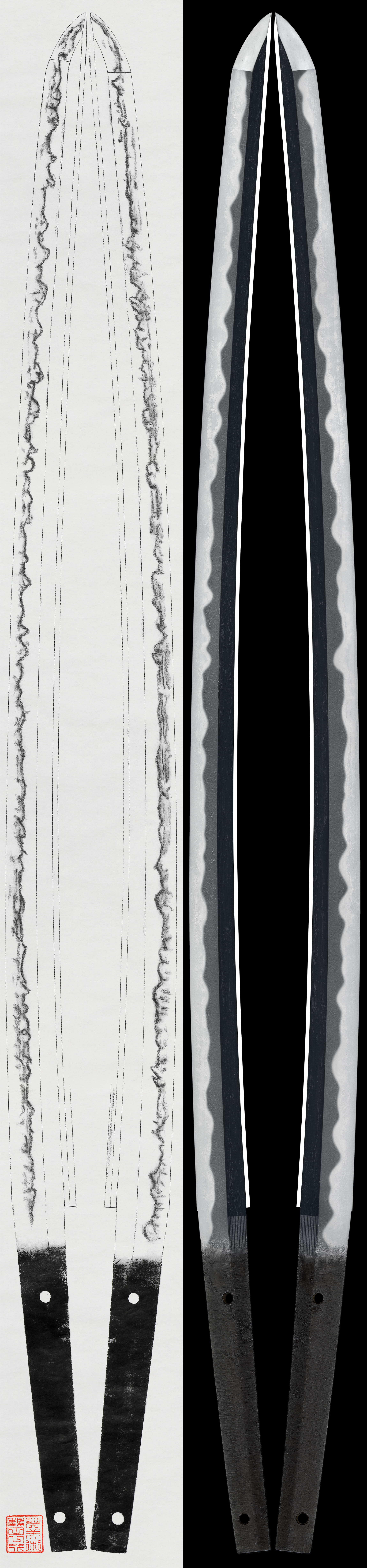 Shape: A wide blade with high shinogi and relatively shallow curvature.