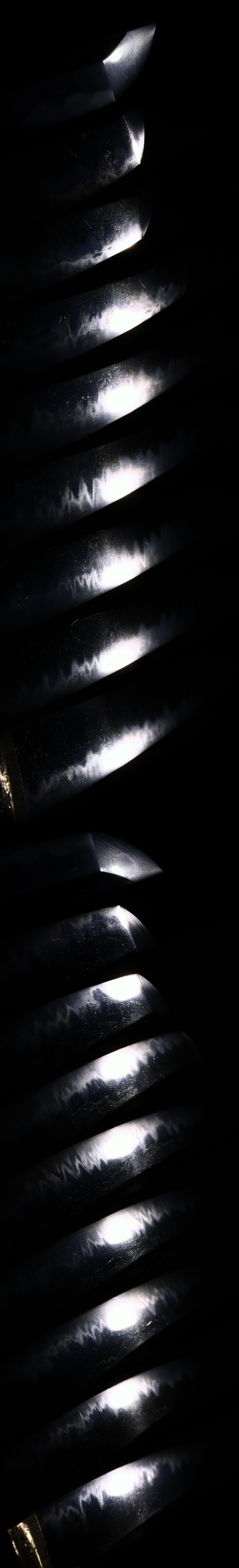 Jigane:Well-forged itame-hada with visible grain, fine ji-nie, and visible utsuri.